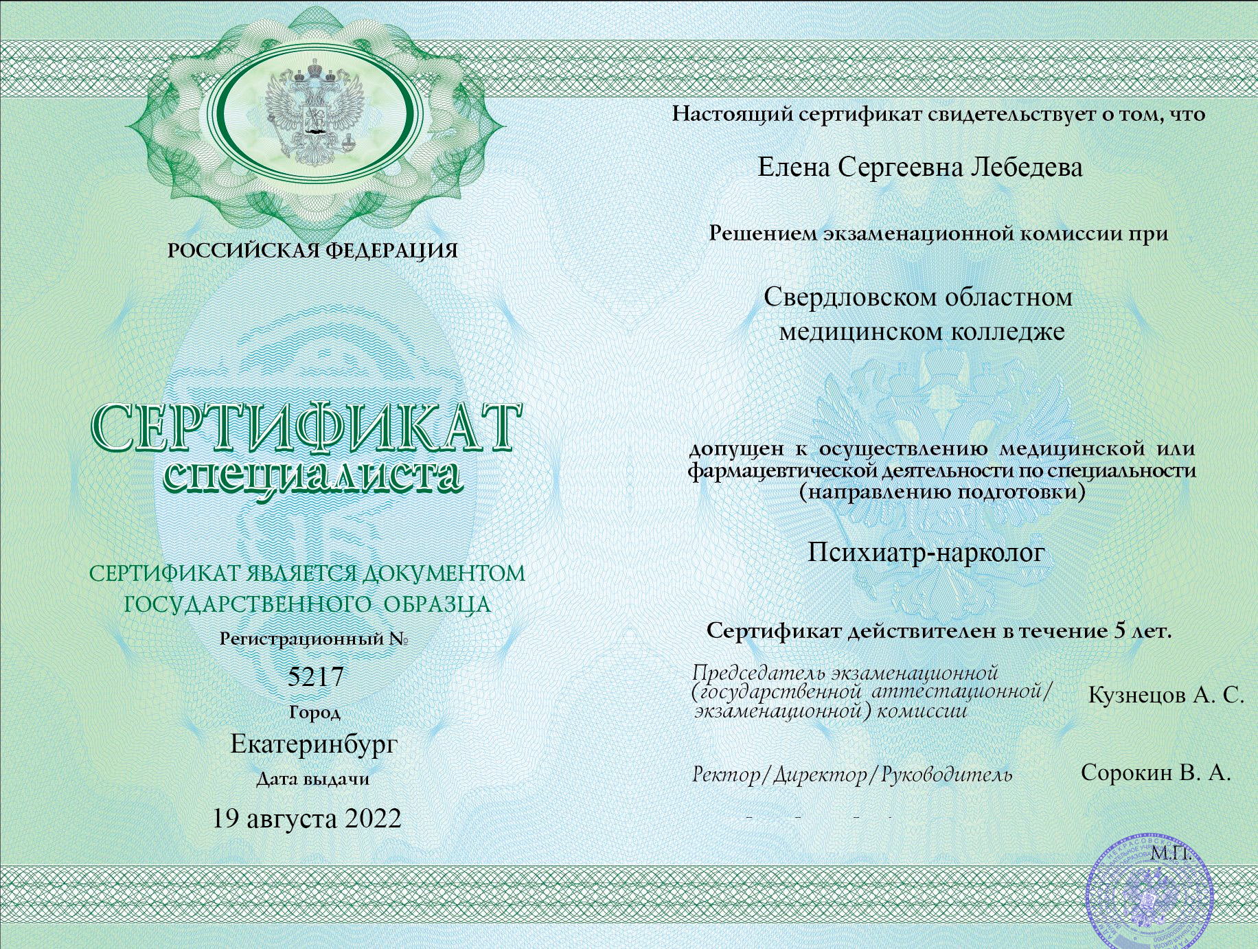 Елена Сергеевна Лебедева врач нарколог клиники доктора Стукаловой в Яе